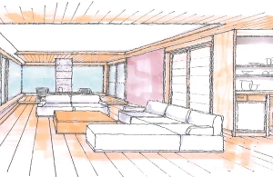 お籠り滞在に適した和洋室。建物に面したお部屋のため眺望はございませんが、落ち着いた空間でゆったりとお過ごしいただけます。
